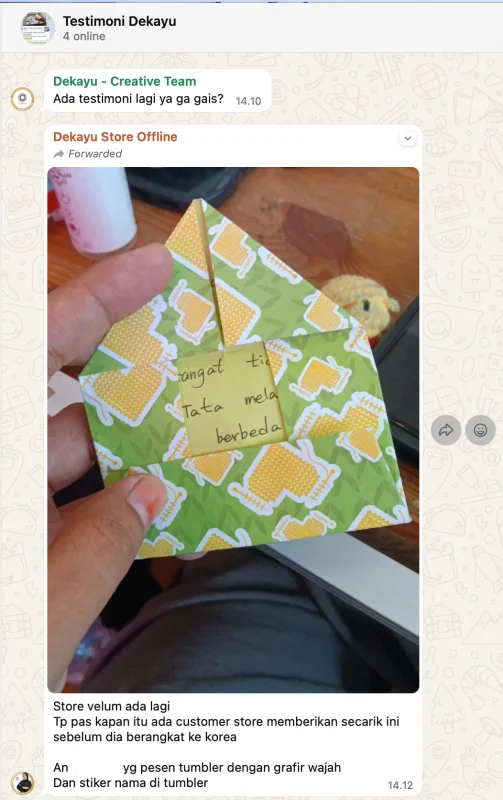 Surat dari pelanggan ini membuktikan bahwa pelayanan ramah Dekayu telah menjadi identitas yang melekat pada setiap pengalaman pelanggan